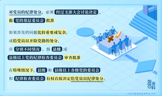 對(duì)黨員的紀(jì)律處分,必須經(jīng)過(guò)支部大會(huì)討論決定,報(bào)黨的基層委員會(huì)批準(zhǔn);