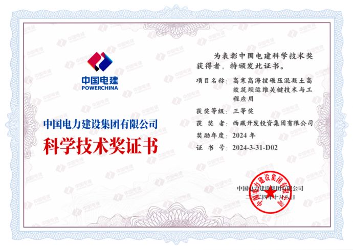 日前,中國電建集團公布了2024年度中國電建科學(xué)技術(shù)獎獲獎項目名單,西藏開投集團果多水電站創(chuàng)新成果——“高寒高海拔碾壓混凝土高效筑壩關(guān)鍵技術(shù)與工程應(yīng)用”榮獲中國電建科學(xué)技術(shù)獎三等獎。