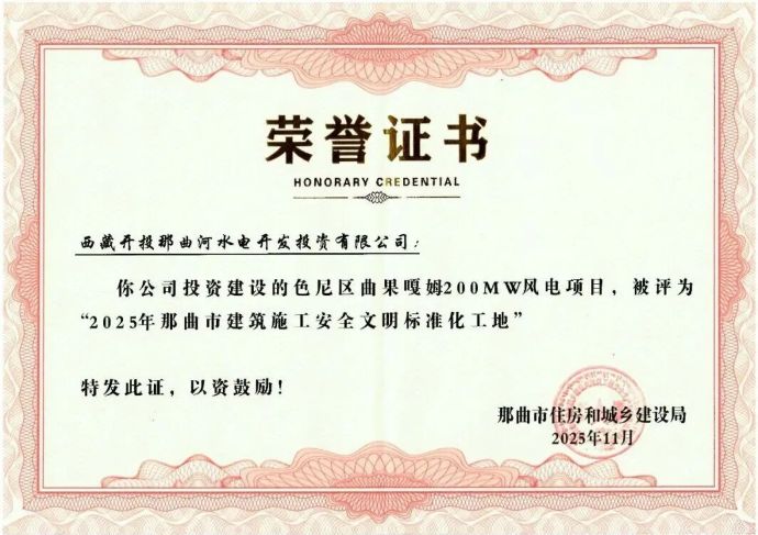 喜報丨色尼區(qū)曲果嘎姆風(fēng)電項(xiàng)目榮譽(yù)+1