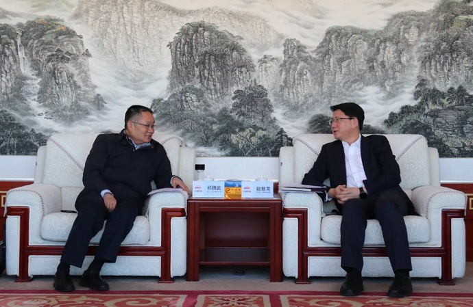 趙佃龍對祁騰武一行到訪表示熱烈歡迎,并介紹了中國鐵建發(fā)展?fàn)顩r。他表示,中國鐵建正在聚焦“穩(wěn)增長、高質(zhì)量發(fā)展”主題,堅持新發(fā)展理念,致力開拓新興業(yè)務(wù)市場,持續(xù)深化改革,全力推進“十四五”期間各項工作。中國鐵建將進一步提升各分子公司履約水平,充分發(fā)揮全產(chǎn)業(yè)鏈優(yōu)勢,希望雙方在更高層面、更廣領(lǐng)域深化合作,努力實現(xiàn)互惠互利、共贏發(fā)展。