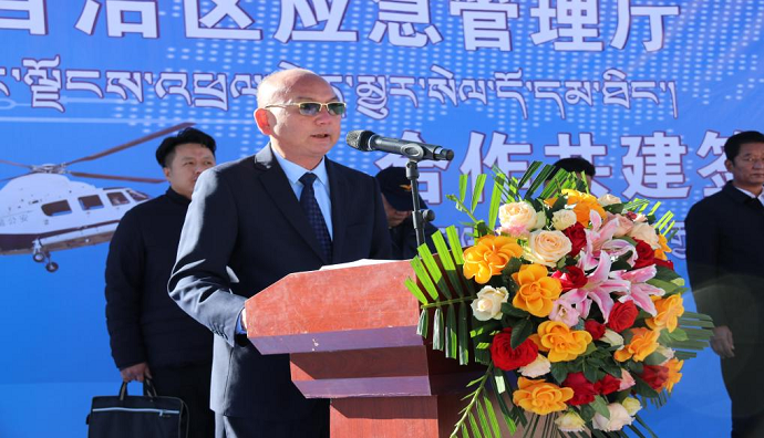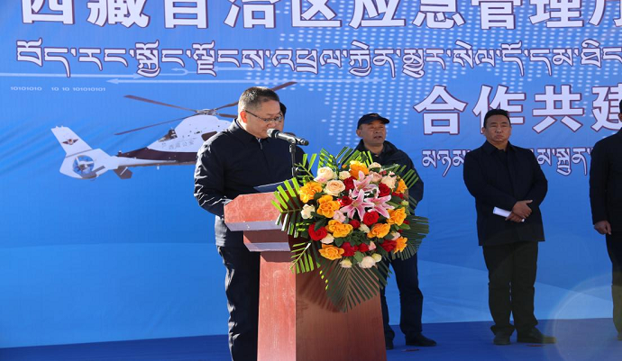 祁騰武代表西藏民航投,對各位領(lǐng)導(dǎo)、嘉賓的到來表示衷心感謝和誠摯歡迎。他表示,西藏航空應(yīng)急救援基地的建設(shè)和揭牌,是貫徹落實(shí)習(xí)近平總書記關(guān)于西藏工作和應(yīng)急救援體系建設(shè)重要指示批示精神,推動自治區(qū)黨委第十一次、第十四次專題會議精神落實(shí)落地的重要舉措,為推動我區(qū)不斷健全完善“統(tǒng)一指揮、上下聯(lián)動、空地同、快速反應(yīng)”應(yīng)急救援機(jī)制和“立體式、全天候、全災(zāi)種、高水平”綜合應(yīng)急救援體系邁出了堅實(shí)的一步。期待民航投與自治區(qū)應(yīng)急廳的戰(zhàn)略合作從“心”出發(fā),向新而行,不斷開創(chuàng)新的局面,交出滿意合格答卷。