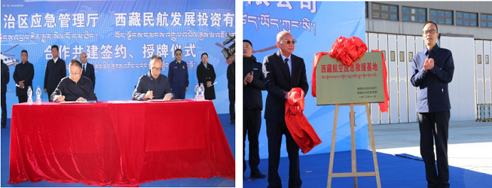 11月16日上午,西藏自治區(qū)應(yīng)急管理廳與西藏民航發(fā)展投資有限公司戰(zhàn)略合作協(xié)議簽約暨“西藏航空應(yīng)急救援基地”揭牌儀式在拉薩舉行。區(qū)應(yīng)急管理廳黨委副書記、廳長洪力,區(qū)發(fā)展與改革委員會副主任付玉壽,西藏開發(fā)投資集團(tuán)有限公司黨委書記、董事長,民航投公司董事長祁騰武共同出席簽約和揭牌儀式。