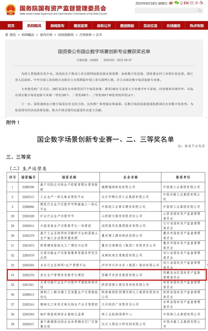 捷報傳來丨西藏開投集團榮獲國企數(shù)字場景創(chuàng)新專業(yè)賽生產(chǎn)運營類三等獎
