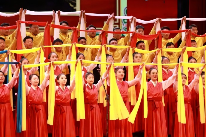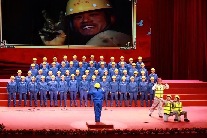 “朋友!你到過黃河嗎?你渡過黃河嗎?你還記得河上的船夫拼著性命和驚濤駭浪搏戰(zhàn)的情景嗎?如果你已經(jīng)忘掉的話,那么你聽吧!”由58人組成的西藏開投集團(tuán)參賽隊(duì)以一曲《保衛(wèi)黃河》,唱響了黨領(lǐng)導(dǎo)全國人民走過的風(fēng)雨歷程,唱出了戰(zhàn)勝敵人、奪取勝利的激情。