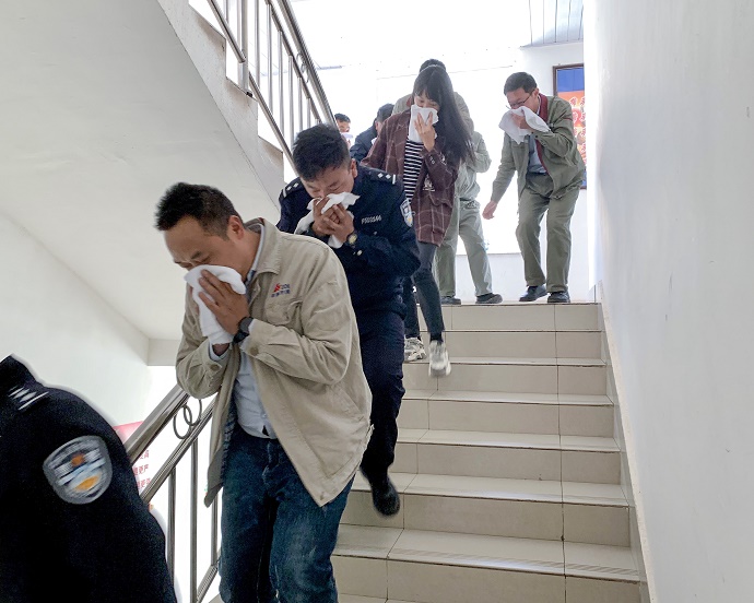 (演練火災現(xiàn)場逃離 劉式花攝)