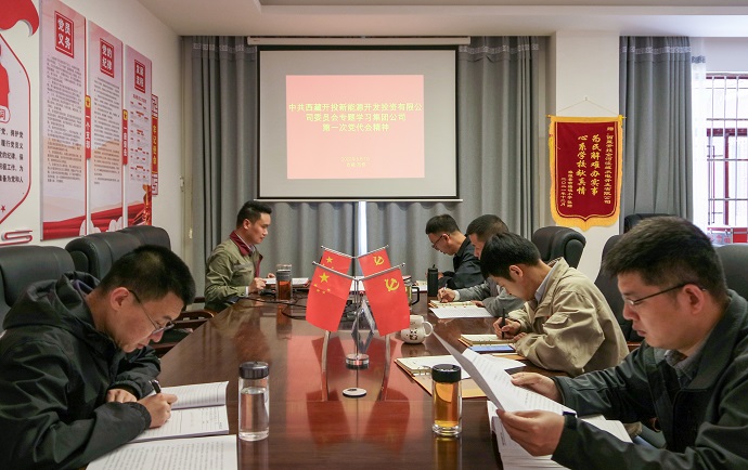會議要求,一要深刻認(rèn)識集團(tuán)公司第一次黨代會的重大意義和豐富內(nèi)涵,把學(xué)習(xí)好、宣傳好、貫徹好黨代會精神作為當(dāng)前一段時(shí)間最大的政治任務(wù),迅速在新能源公司上下掀起學(xué)習(xí)黨代會精神的熱潮。通過黨委理論學(xué)習(xí)中心組集中學(xué)習(xí)、支部會議、研討會等多種方式,堅(jiān)持集中學(xué)習(xí)和個(gè)人自學(xué),通讀報(bào)告與專題研討相結(jié)合,確保學(xué)習(xí)宣傳貫徹取得實(shí)實(shí)在在的效果。二要將學(xué)習(xí)集團(tuán)公司第一次黨代會精神與改進(jìn)作風(fēng)狠抓落實(shí)工作結(jié)合起來,與按期推動(dòng)吉塘一期20萬千瓦光伏項(xiàng)目結(jié)合起來,并以此為主線,所有工作都要往這條主線聚焦。從黨委到各黨支部、各部門逐級有序深入組織學(xué)習(xí)宣傳貫徹黨代會精神活動(dòng),確保學(xué)習(xí)貫徹黨代會精神實(shí)現(xiàn)全覆蓋,確保學(xué)習(xí)一個(gè)不少,人人參與。三要把新能源公司各項(xiàng)工作融于集團(tuán)公司發(fā)展戰(zhàn)略全局考慮,聚焦“四件大事”“四個(gè)確保”,聚力“四個(gè)創(chuàng)建”“四個(gè)走在前列”,切實(shí)把集團(tuán)公司第一次黨代會精神落實(shí)到新能源公司主責(zé)主業(yè)和今年各項(xiàng)工作目標(biāo)及明年工作超前謀劃之中,推動(dòng)學(xué)習(xí)貫徹往實(shí)里走、往深里走,為助力集團(tuán)公司高質(zhì)量發(fā)展凝聚磅礴力量,在集團(tuán)公司“二次創(chuàng)業(yè)”中以實(shí)績展現(xiàn)新能源公司新?lián)?dāng)、新作為、新形象。