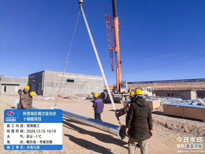 ▲噶爾光伏發(fā)電項目,現(xiàn)場施工人員開展避雷針吊裝作業(yè)。