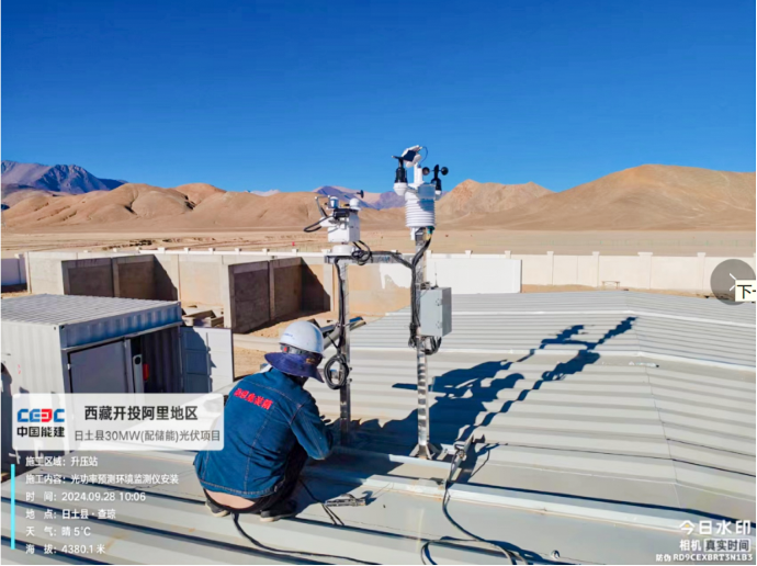 ▲日土光伏項目,現(xiàn)場施工人員開展光功率預(yù)測環(huán)境檢測儀安裝作業(yè)。