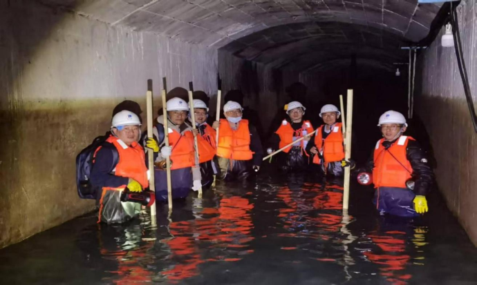 旁多水利樞紐工程灌溉輸水洞排查現(xiàn)場。