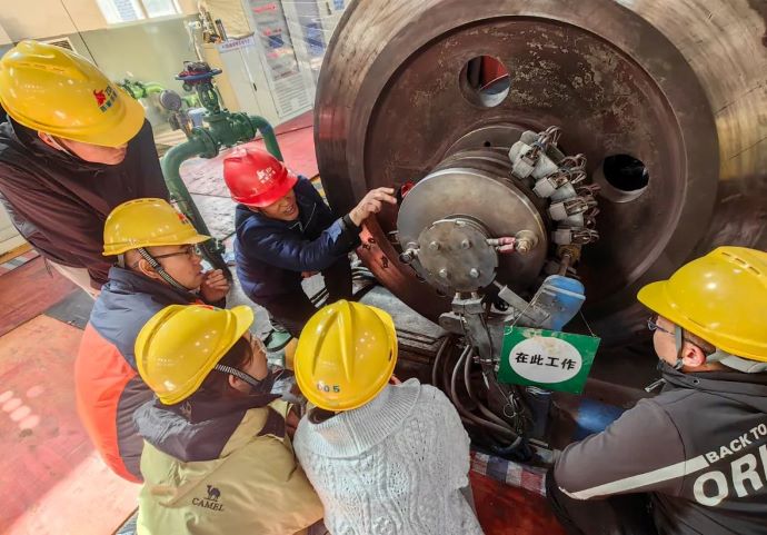 近日,嘎堆水電公司1號(hào)機(jī)組開展年度檢修工作。公司組織新員工赴檢修現(xiàn)場(chǎng)了解水輪發(fā)電機(jī)組系統(tǒng)布置,熟悉設(shè)備構(gòu)造,了解機(jī)組工作原理,使他們對(duì)機(jī)組工作過(guò)程有了更深刻的認(rèn)識(shí),全面提高隱患辨識(shí)能力,為公司機(jī)組長(zhǎng)期安全穩(wěn)定運(yùn)行保駕護(hù)航。