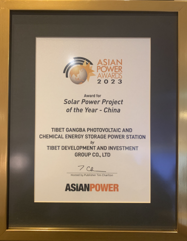 11月8日晚,在馬來西亞首都吉隆坡舉行的“2023年亞洲電力獎(jiǎng)”頒獎(jiǎng)大會(huì)上,西藏開發(fā)投資集團(tuán)有限公司崗巴光伏光熱發(fā)電分公司從眾多入圍的優(yōu)秀電力企業(yè)中脫穎而出,斬獲“2023年亞洲電力獎(jiǎng)——年度最佳太陽能發(fā)電項(xiàng)目獎(jiǎng)和亞太區(qū)年度電池存儲(chǔ)項(xiàng)目-銅獎(jiǎng)”,成為同年度中國唯一一家獲得二個(gè)獎(jiǎng)項(xiàng)的發(fā)電企業(yè)。