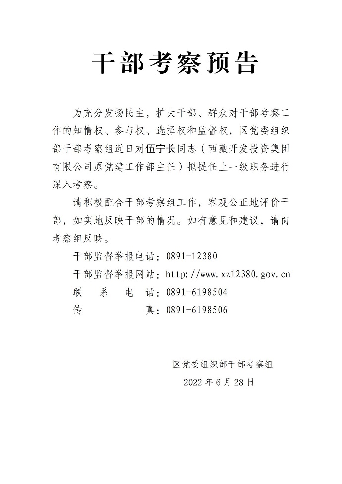 干部考察預(yù)告