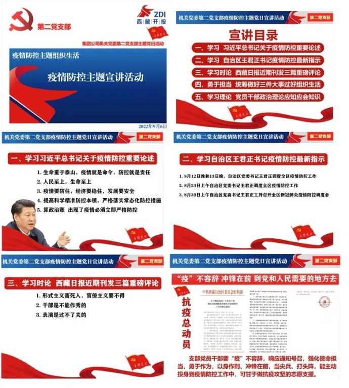 為貫徹落實區(qū)黨委和區(qū)政府國資委黨委近期工作部署、集團公司黨委具體工作要求,結合疫情防控工作實際,9月6日下午,中共西藏開發(fā)投資集團有限公司機關第二支部委員會組織全體黨員開展疫情防控主題黨日宣講活動。受疫情影響,活動以網(wǎng)絡視頻形式召開。集團公司黨委委員、副總經理、工會主席、機關黨委書記溫勇同志以普通黨員身份參加活動。
