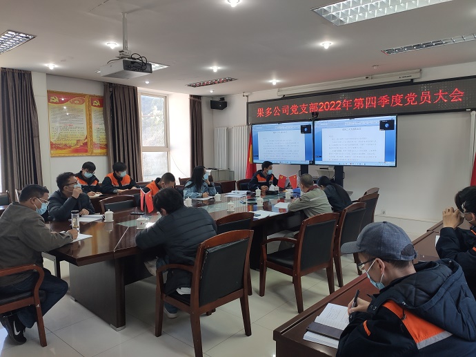 10月19日,西藏開投果多水電有限公司黨支部召開2022年第四季度黨員大會,專題學習黨的二十大報告精神。