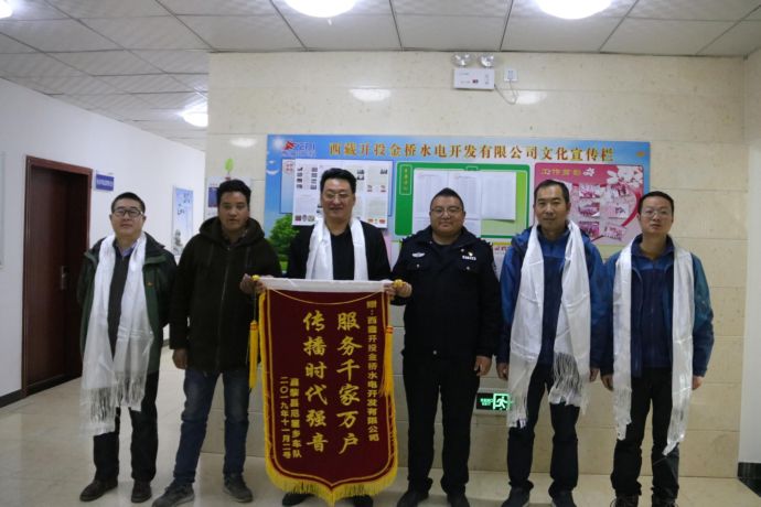 12月4日,尼屋鄉(xiāng)派出所副所長多吉帶領(lǐng)尼屋鄉(xiāng)扶貧車隊代表將“服務(wù)千家萬戶 傳播時代強音”錦旗遞送到西藏開投金橋水電開發(fā)有限公司(以下簡稱“金橋公司”)副總經(jīng)理李輝手中,表達(dá)對金橋公司的深深謝意。