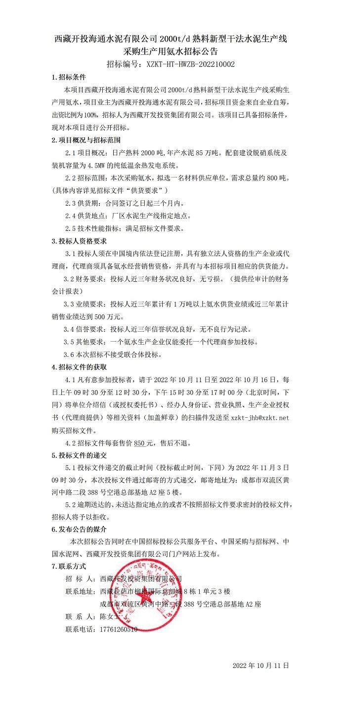 采購生產(chǎn)用氨水招標(biāo)公告