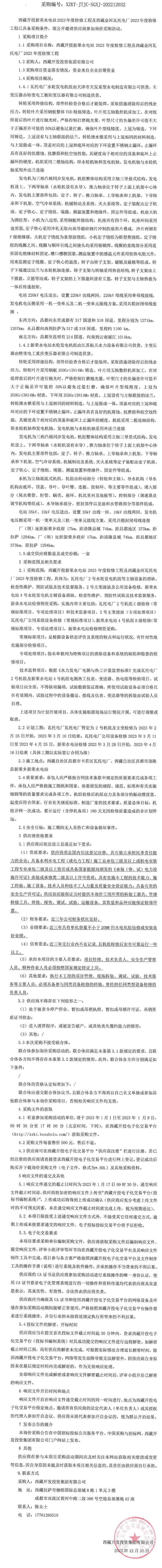 西藏開投新榮水電站2023年度檢修工程及西藏金河瓦托電廠