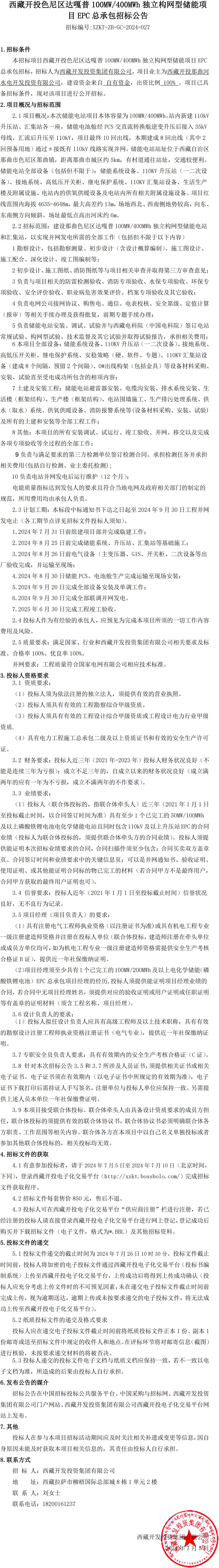 西藏開投色尼區(qū)達(dá)嘎普100MW400MWh獨(dú)立構(gòu)網(wǎng)型儲(chǔ)能項(xiàng)目EPC總承包公告