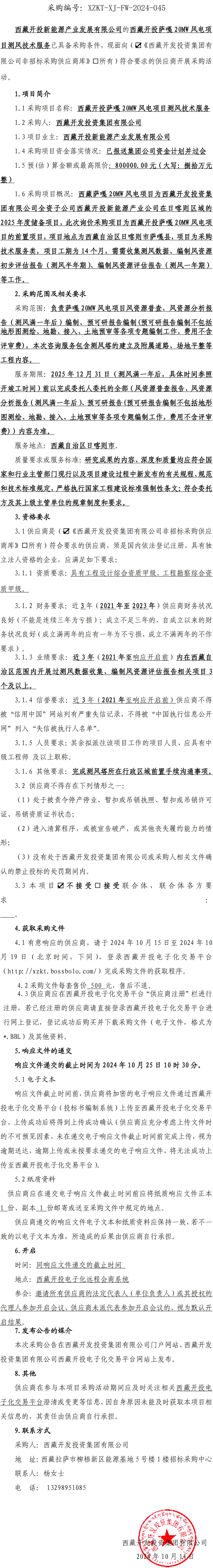 西藏開投薩嘎 20MW 風(fēng)電項目測風(fēng)技術(shù)服務(wù)詢價采購公告