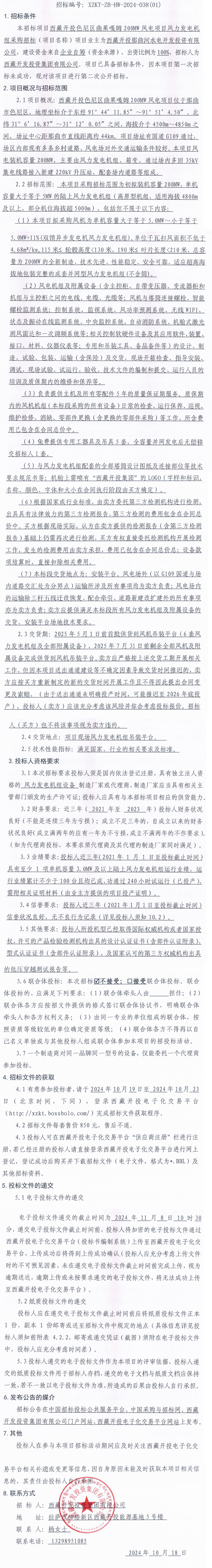 西藏開投色尼區(qū)曲果嘎姆200MW風(fēng)電項目風(fēng)力發(fā)電機(jī)組采招標(biāo)(第二次)招標(biāo)公告