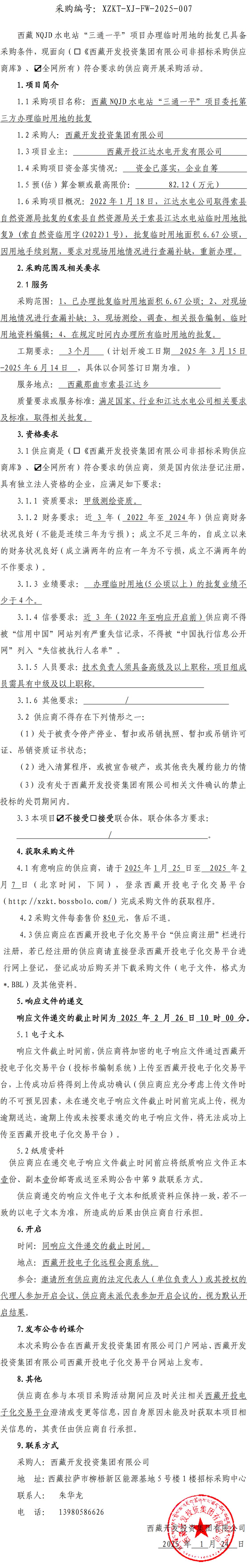 西藏NQJD水電站“三通一平”項(xiàng)目辦理臨時用地的批復(fù)詢價采購公告