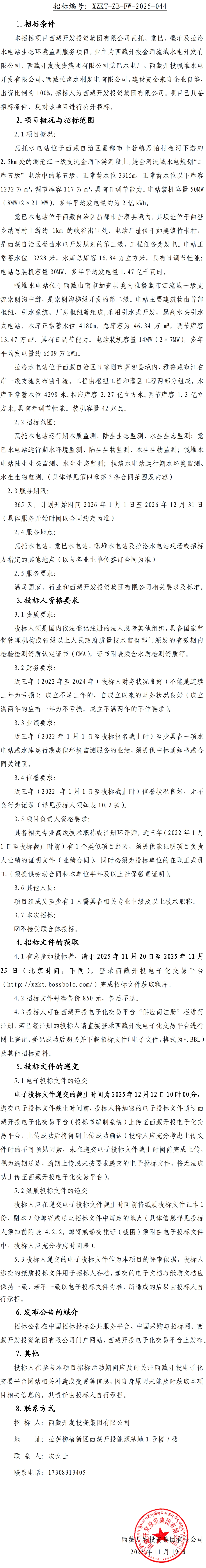 西藏開(kāi)發(fā)投資集團(tuán)有限公司瓦托、覺(jué)巴、嘎堆及拉洛水電站生態(tài)環(huán)境監(jiān)測(cè)服務(wù)招標(biāo)公告