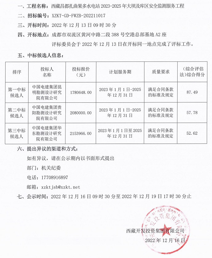 中標(biāo)候選人公示