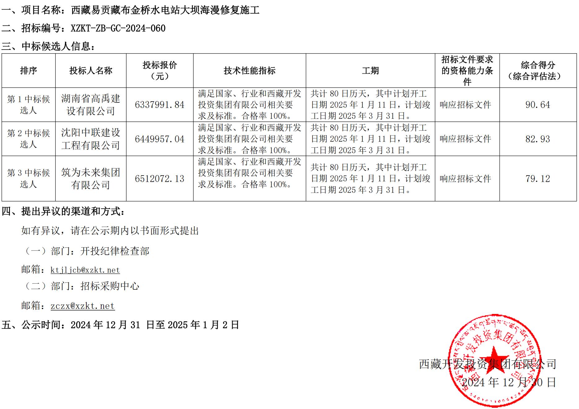 中標(biāo)候選人公示