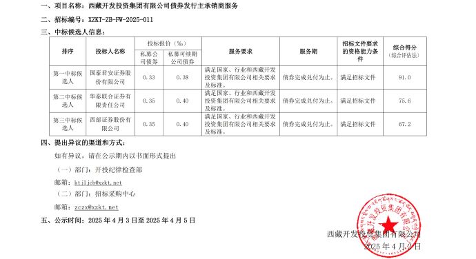 中標(biāo)候選人公示